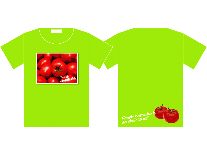 原色系を使ったデザインがしたくて、思いついたのが緑黄色野菜のトマト。トマトが食べたくなるようなデザインを目指した。